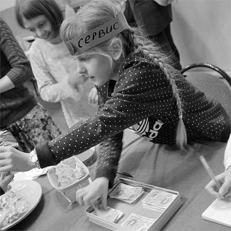 Студия «выпускает» свои арт-деньги — «академы», ребята устраивают рекламные компании с презентацией собственных объектов. Азартные «торги» приносят прибыль, которую мы переводим в московский детский хоспис «Дом с маяком», организованный при участии нашей выпускницы Лидии Мониавы.